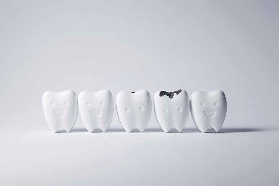 虫歯とは、歯に存在する細菌が糖分を食べて酸を作り出し、その酸が歯の表面を溶かすことで起こる疾患です。細菌感染が原因となり、歯がだんだんと壊れていくため、虫歯は放置すればするほど進行し、歯を失う原因となります。