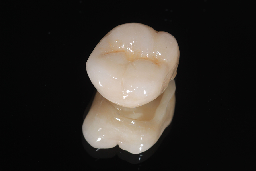 加工が難しいため複雑な形態を再現することが難しく、単純な形態にするために少し削る量が多くなります。また美しい白色ですがe-maxに比べると透明感が弱く、審美性に欠けるところがありますが近年では審美性の高いジルコニアも増えてきております。