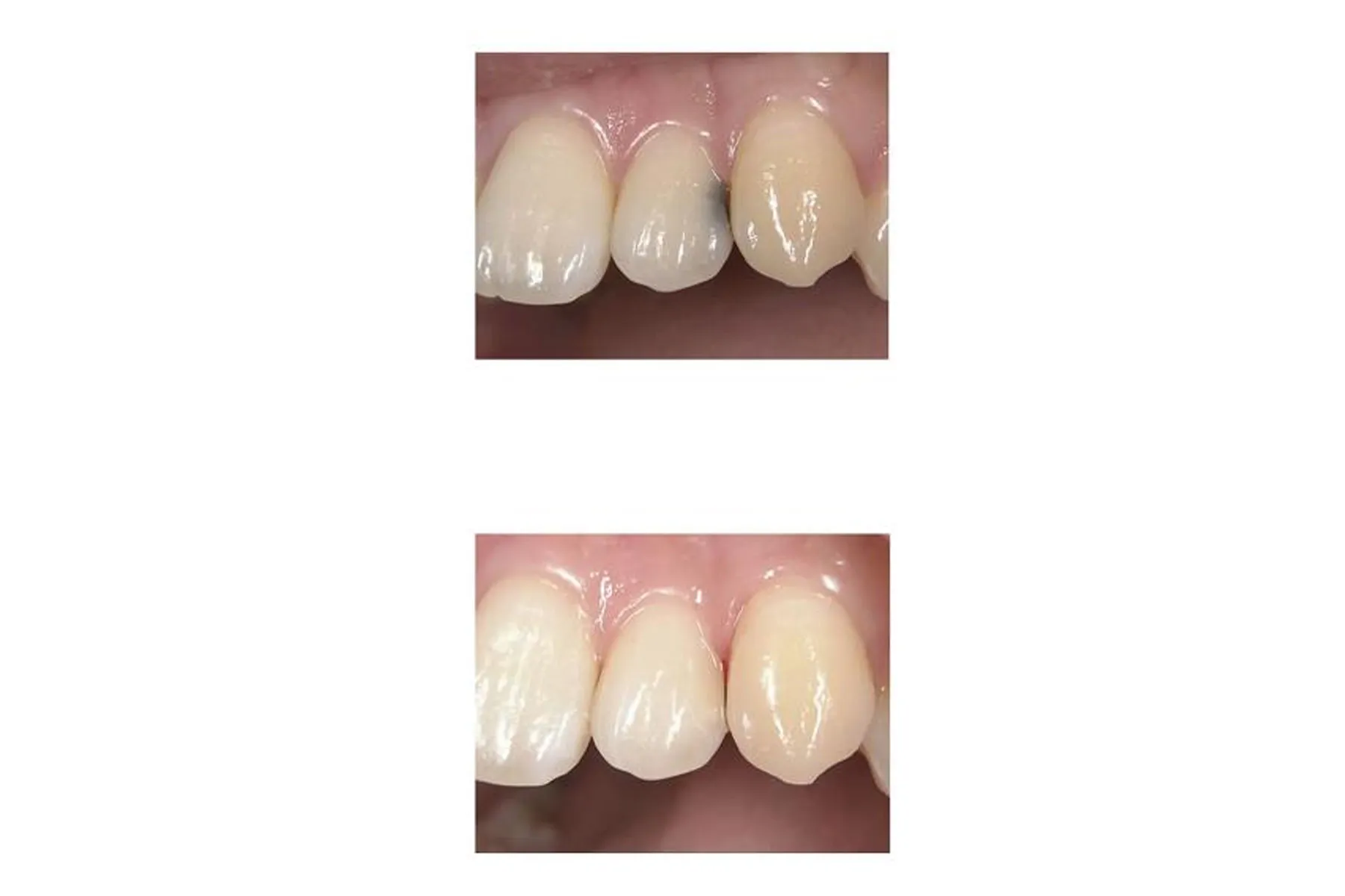 虫歯がエナメル質内の段階であるなら、麻酔を使わない治療で済みます。むし歯を削った部位に、レジンをつめます。レジンは光に反応してすぐに固まりますので、型取りをする必要はありません。歯と同じ色にできるので全く目立ちませんが、年月とともに多少変色してきます。