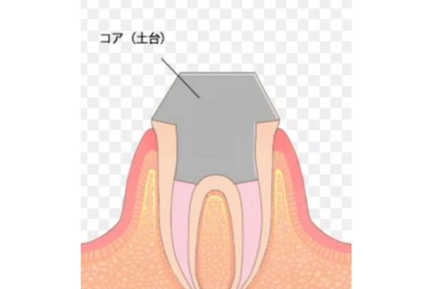 神経治療をした歯の多くはかみ合わせの力によってヒビが入りやすく、破折の原因になってしまいます。それを予防するために立てるのがコア(土台)です。実際にお口の中に見える物ではありませんが、根管治療をして残した歯に基礎工事の仕上げとして入れるコア(土台)。その種類は以下の通りです。
