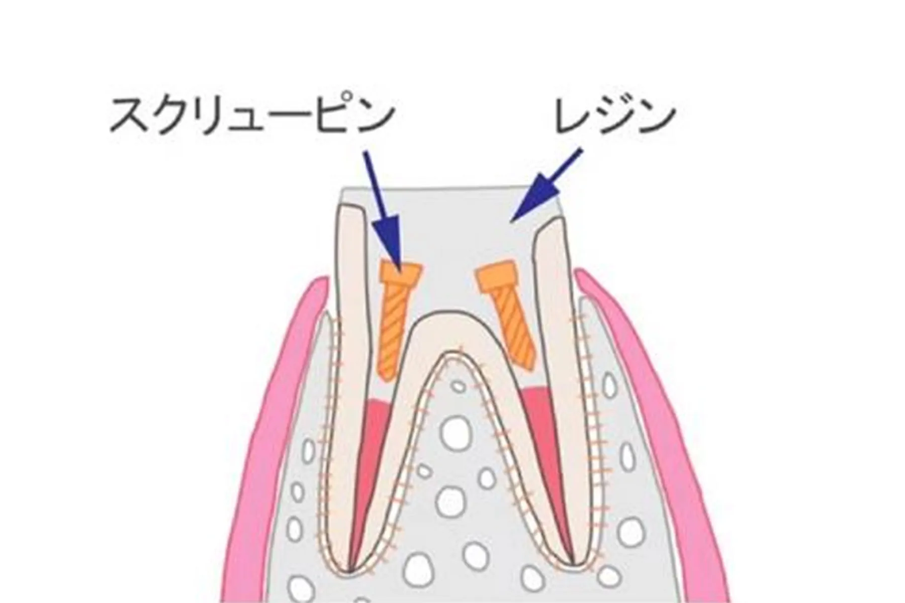 またメタルコアほどではありませんが、スクリューピンのところからの歯根破折のリスクも高くなります。
