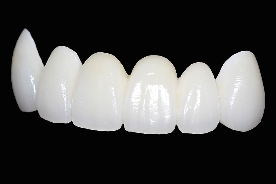 | メリット | ・天然歯にきわめて近い透明感とツヤで、自然で美しい仕上がり ・金属を一切使用しないため、金属アレルギーの心配がない ・長期間使用しても変色しにくく、美しさが持続 ・プラーク(汚れ)が付きにくく、むし歯や歯ぐきの炎症を起こしにくい ・歯ぐきとのなじみが良く、黒ずみが出ない |