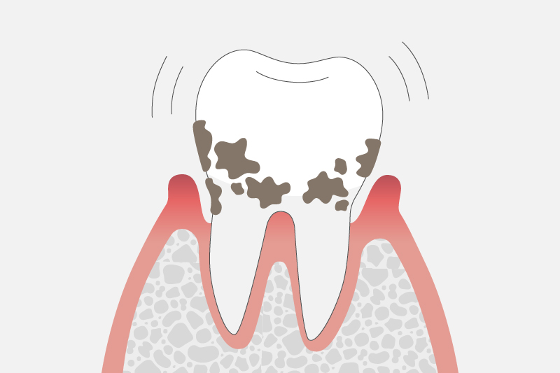 - 歯ぐきが大きく下がり、歯がグラグラ動く