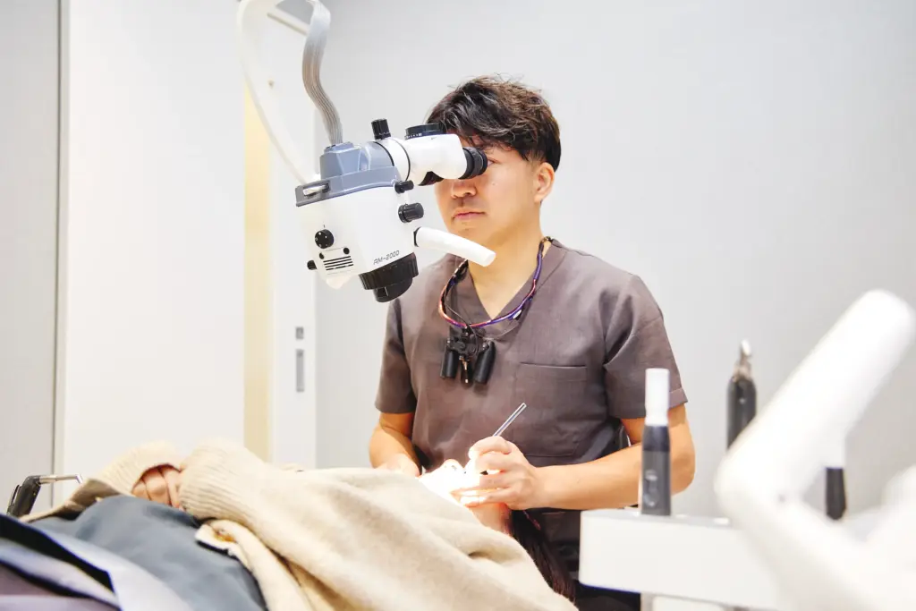 治療の際はマイクロスコープ(歯科用顕微鏡)を活用。